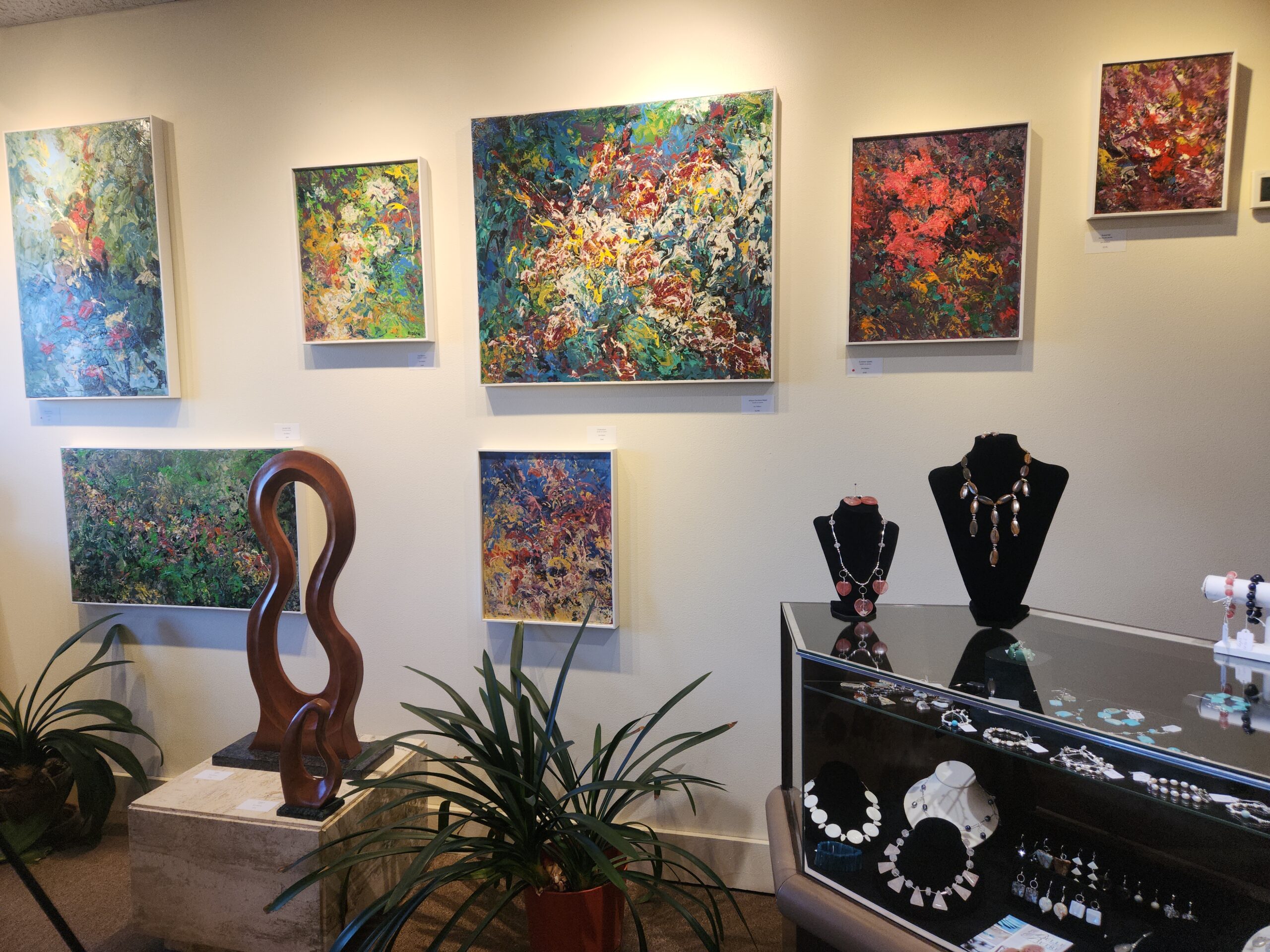 necklaces, earrings and bracelets are on display. Those pieces come from Belle Pietre Jewelry,